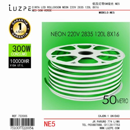 Cinta Neon Verde 50Mtrs 220v